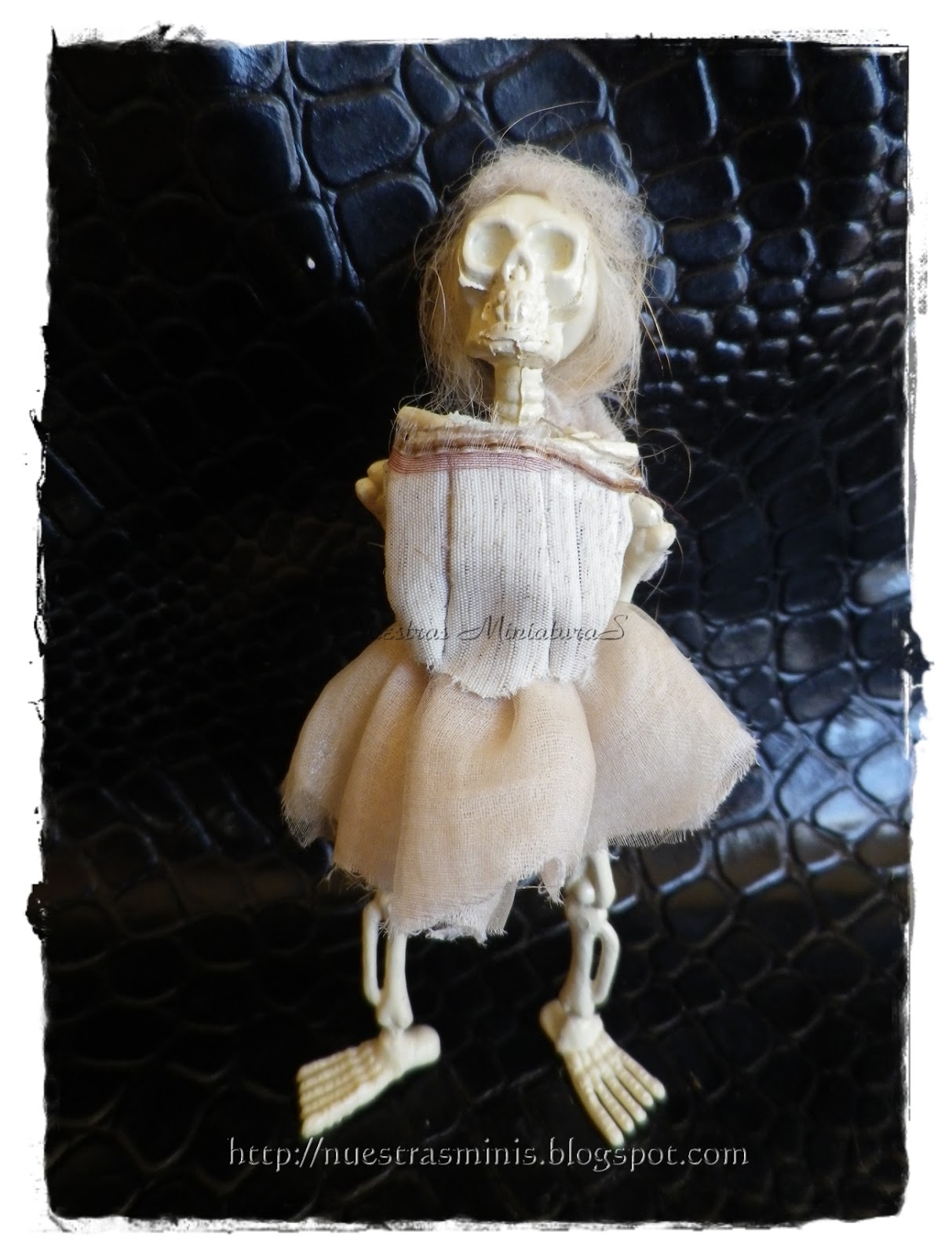 Para realizarla elegí un esqueleto algo más pequeño. Todavía le falta colocarla en su base de madera y terminar de colocarle adecuadamente las piernas, pero no podía esperar a enseñarla:
